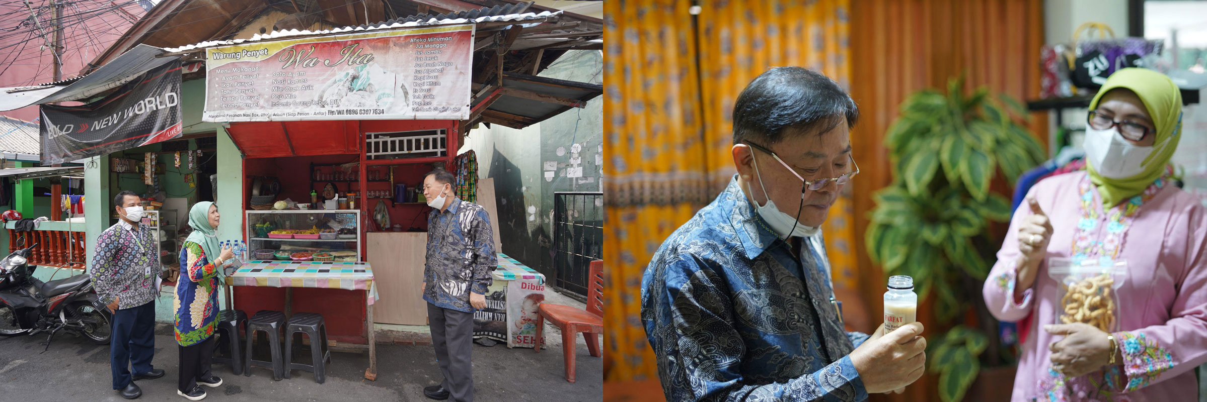 Seo Jeongsik meninjau usaha milik penerima modal usaha Youth Entrepreneurship Program Yayasan Korindo Dina Avriani dan Nur Linda